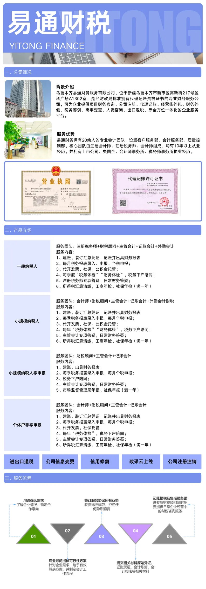 “王总,税务稽查下周三到您公司,请准备好近三年的账务资料。”这个突如其来的电话,让正在开会的王总瞬间冒出了冷汗。近三年的账目?票据是否齐全?成本分摊是否合理?优惠政策是否用对?无数个问号在脑海中炸开——接下来的一周,他和团队可能都要在翻箱倒柜和忐忑不安中度过了。超过70%的中小企业主对自己的税务健康状况并不清楚。他们通常直到接到稽查通知、收到滞纳金罚单、或申请补贴被拒时,才意识到问题存在。票据管理不规范:缺票、假票、票面信息不符,导致进项无法抵扣政策理解有偏差:误用优惠政策,或错过本可享受的税收红利历史遗留问题:过去为“省事”采取的不规范操作,成为今日隐患更令人担忧的是,在如今金税四期大数据监管下,这些风险被发现的概率大大增加。一次稽查,可能不仅是补税罚款,更会影响企业信用、招投标资格,甚至法人的个人征信。易通财务税务风险体检:为企业做一次全面的“税务CT”不同于传统的事后补救,我们主张主动防御,提前排雷。易通财务依托注册会计师、注册税务师专业团队,结合服务新疆企业超500家的实战经验,推出 【深度税务风险体检报告】服务。关键风险点的常态化监控机制为什么选择易通财务做税务体检?我们的体检团队由注册会计师+注册税务师双资质专家领衔,不仅懂账,更懂税;不仅懂政策条文,更懂税务机关的执行口径和检查重点。我们出具的不仅是“问题清单”,更是“解决方案包”:所有体检均在严格的保密协议下进行,我们恪守会计师职业道德,您的商业信息与税务数据将得到最高级别的保护。那么,一份199元的税务风险体检,将是您今年为企业做的最有价值的投资之一。与其在稽查来临前夜不能寐,不如主动掌握自己的税务健康状况。地址:乌鲁木齐市新市区高新街217号盈科广场13楼