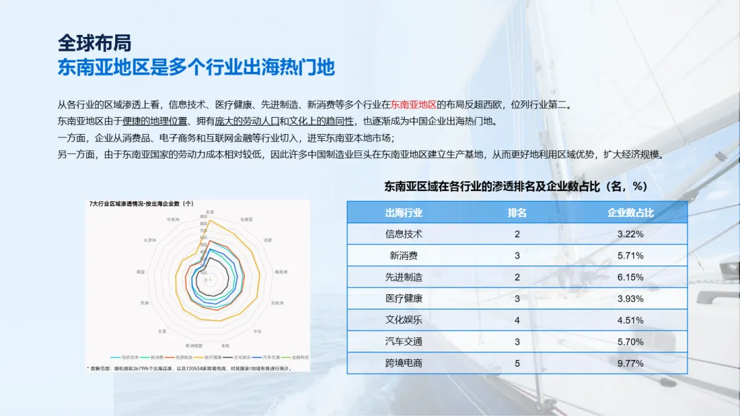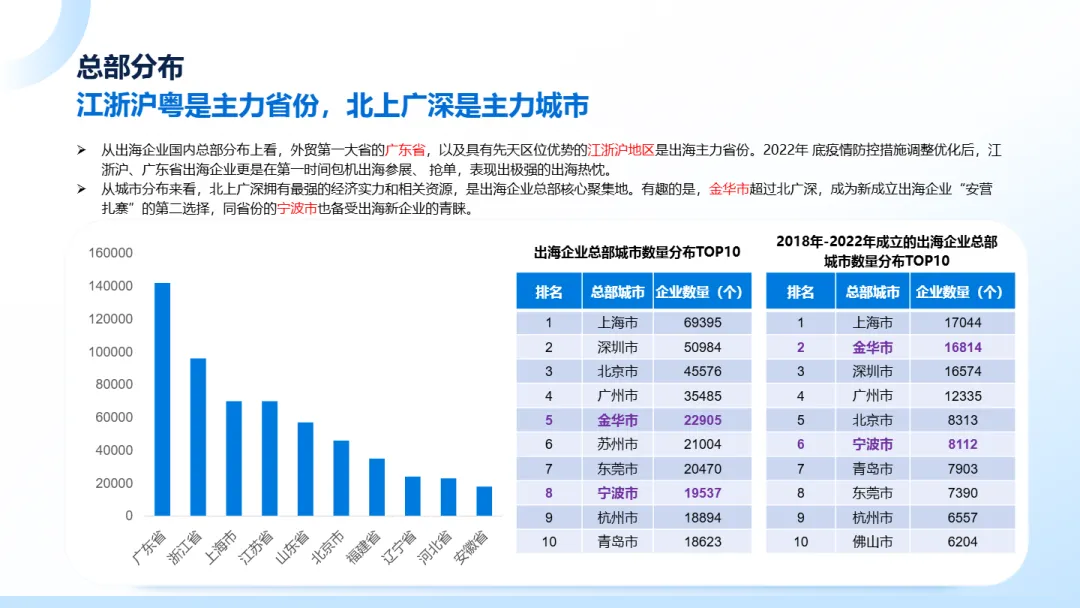 • 东南亚成多行业出海首选,金华、宁波崛起为新势力总部城市:信息技术、新消费等行业在东南亚布局已反超西欧;新设出海企业偏好落地金华(第二)、宁波,显示产业带城市借助供应链与物流优势加速全球化布局。