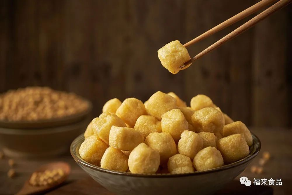 豆腐泡既可作蒸、炒、炖之主菜,又可为各种肉食的配料,是荤宴素席兼用的佳品。油豆腐富含丰富蛋白、多种氨基酸等,铁、钙的含量也很高。