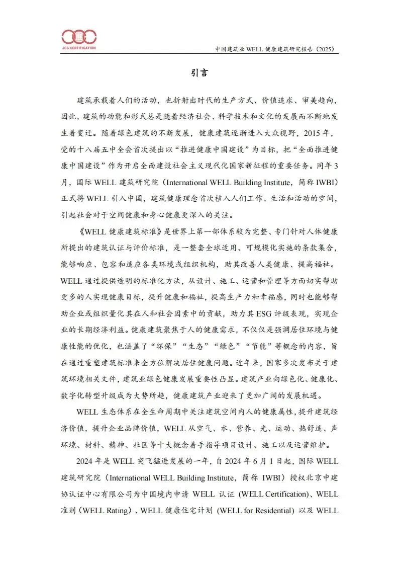 随着“健康中国”战略推进及绿色建筑理念深化,健康建筑成为行业焦点。WELL标准作为全球首个专注人体健康的建筑认证体系,从空气、水、光等十大概念出发,通过科学评估提升建筑健康性能,助力企业ESG表现与长期发展。