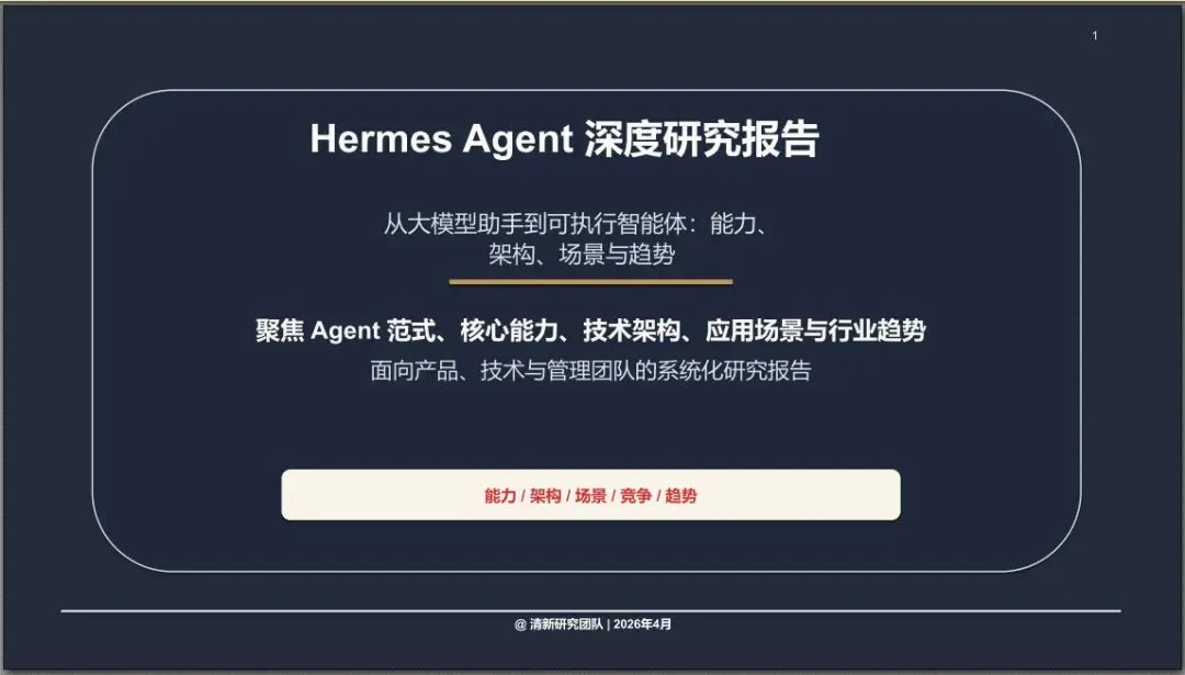 Hermes Agent 究竟是什么?与 Chatbot、Copilot、RPA 有何不同? 核心能力边界在哪里? 技术架构由哪些模块构成? 适合哪些业务场景?如何创造 ROI? 与 OpenAI Operator、Claude Code、AutoGPT 等相比有何差异? Agent 未来 2-3 年的演进方向是什么?
