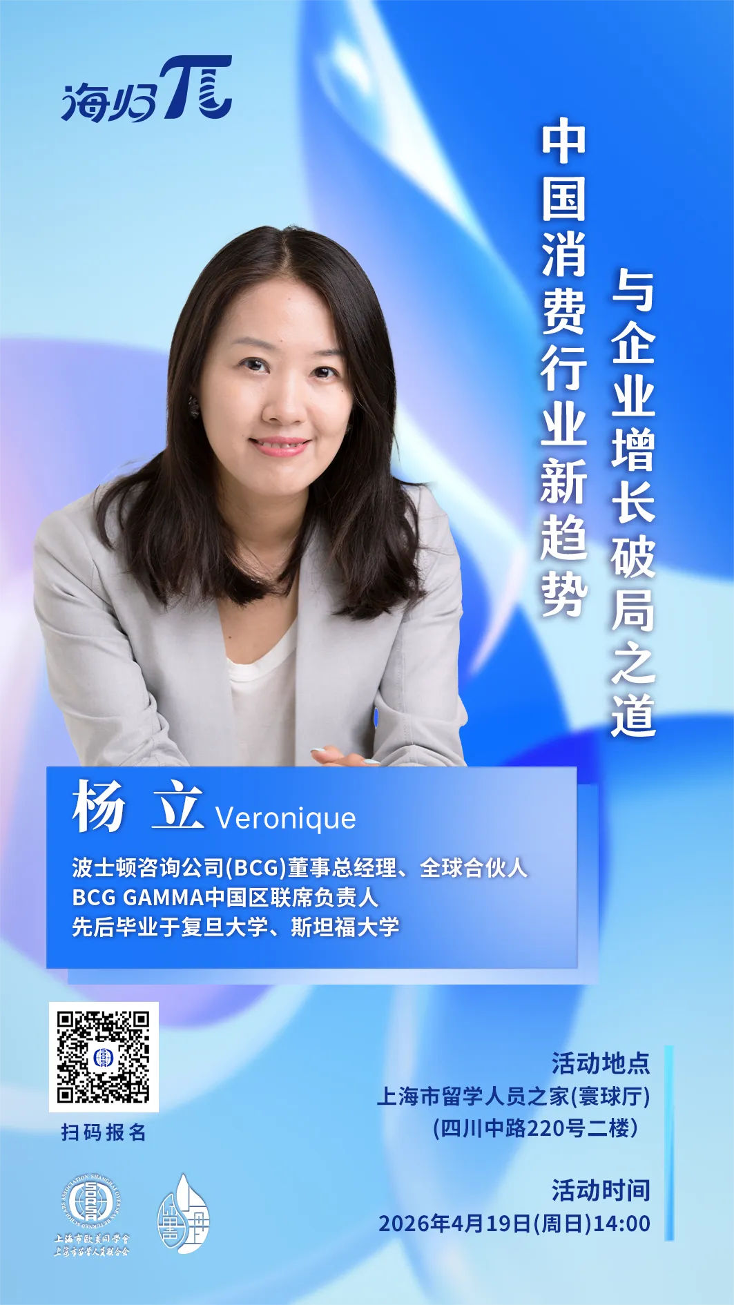 上海市欧美同学会“海归π”系列活动将以“中国消费行业新趋势与企业增长破局之道”为主题,特邀波士顿咨询公司(BCG)董事总经理、全球合伙人、BCG GAMMA中国区联席负责人杨立,立足消费行业现状,拆解市场核心变化,解读品类分化逻辑,分享企业破局关键路径。