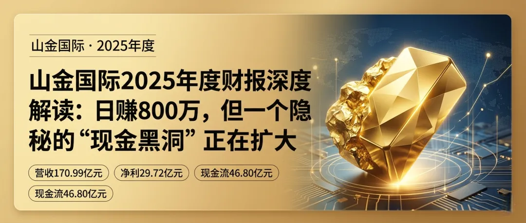 在金价持续闪耀的2025年,一家黄金巨头交出了一份堪称“教科书级别”的财报:营收利润双双高增,现金流充沛到令人咋舌,负债率低得像个“守财奴”。山金国际,这家名字里就带着“金”字的公司,似乎正躺在金山上数钱。然而,当我们像侦探一样,用放大镜审视这份近乎完美的成绩单时,却在最耀眼的“现金”光芒下,发现了一个隐秘且巨大的“现金黑洞”。这个黑洞,足以让所有为靓丽数据欢呼的投资者,瞬间冷静下来。这究竟是黄金周期赐予的盛宴,还是暗藏玄机的财务魔术?今天,我们就来一层层剥开山金国际2025年的财富密码与风险谜题。