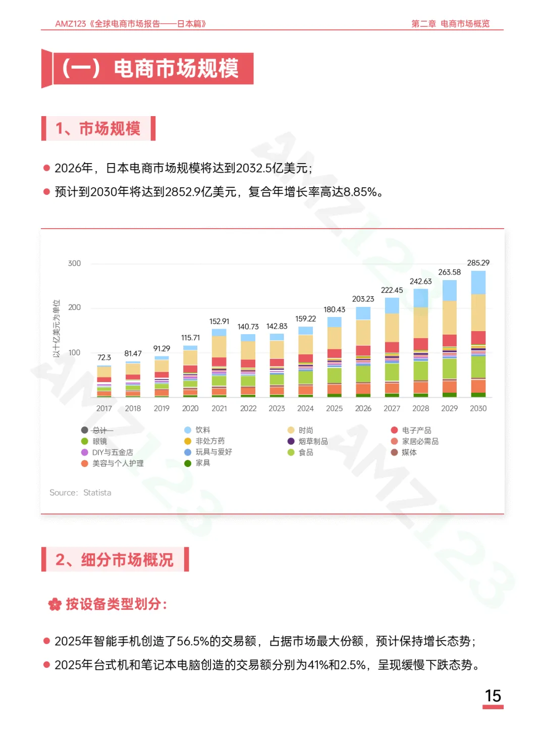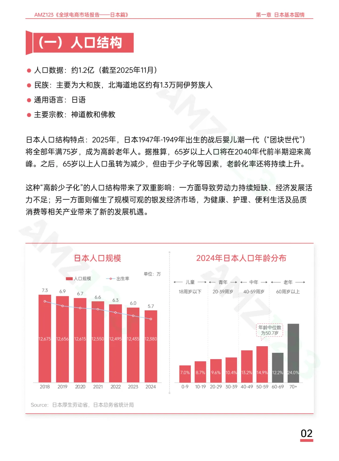 报告聚焦 2026 年日本电商市场,从国情、市场、用户、渠道、出海策略五大维度,为中国跨境卖家提供全景解读。日本作为全球第三大电商市场,呈现高门槛、高利润、高粘性特征,是中国品牌出海的关键阵地。————
