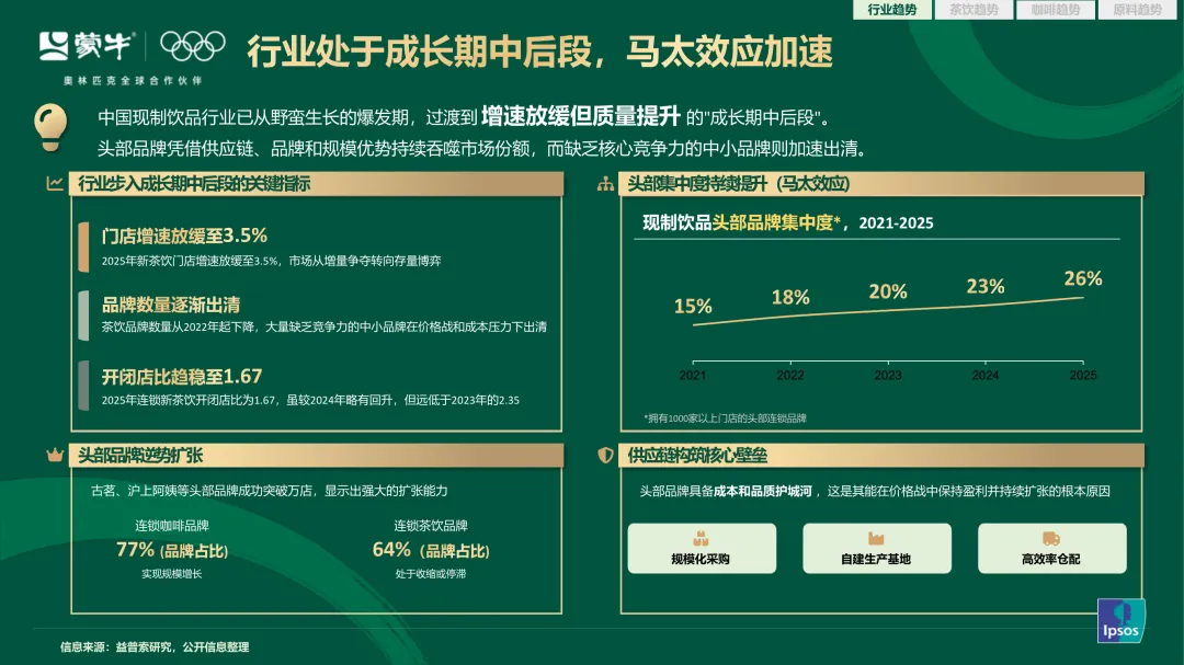 核心观点: 2026年茶饮和咖啡市场已从“量”的扩张转向“质”的深耕,健康化、地域化、风味融合成为核心趋势,爆品逻辑从简单的“网红”转向“真材实料+情绪价值+场景适配”的综合体验。
