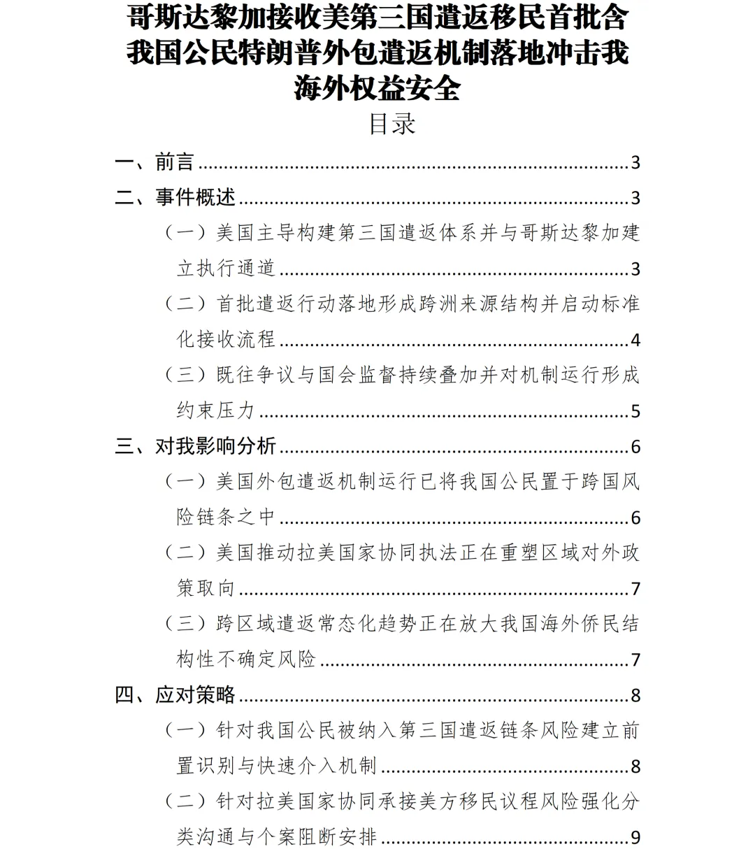 实际执行中,人员来源呈跨洲分布,身份结构复杂,安置周期与最终去向均存在不确定性,叠加多方参与带来的责任分散,使相关处置链条显著拉长。随着美国持续推动类似安排向拉美及其他地区扩展,这一机制正在形成可复制、可扩展的制度框架,其对跨境人员流动、安全治理及外部舆论环境的影响已进入加速显现阶段。