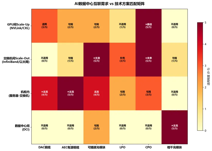 图5:AI数据中心互联需求 vs 技术方案匹配矩阵