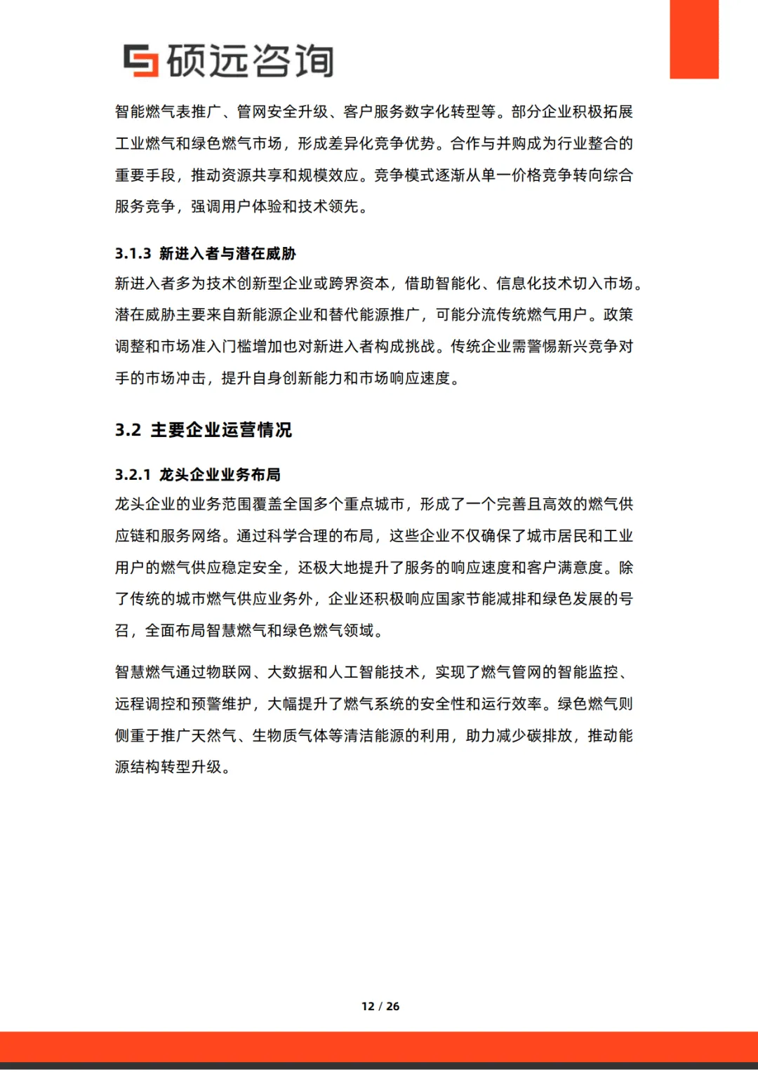 报告围绕中国城市燃气公共服务行业展开全面分析,涵盖行业概况、市场规模、竞争格局、技术创新、风险挑战及未来趋势六大核心维度,清晰呈现行业发展全貌与未来方向。