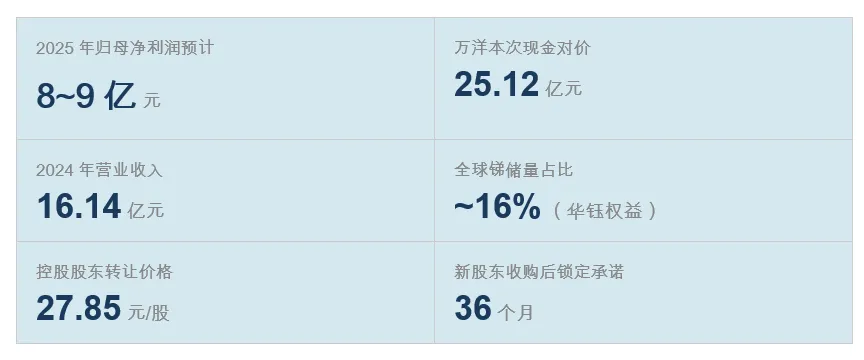 首先,27.85元/股系双方经过充分博弈后确认的市场化价格,万洋一次性拿出约25.12亿元现金完成这笔交易。大额现金收购而非换股、而非资产置换,说明万洋对华钰矿业资产质量的高度认可,也说明万洋集团自身资金实力充裕。对于二级市场投资者而言,这意味着: