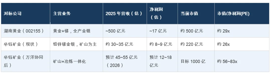 这是华钰矿业历史上的转折性时刻。在我们看来,此次控制权变更绝非简单的股权腾挪,而是一次高度匹配的战略合并——华钰有矿,万洋有钱有冶炼;华钰产能受限于资金,万洋受限于原料来源。二者结合,化学反应巨大。结合公司资源储量的全球稀缺性、锑价中枢持续上移的行业背景以及新股东带来的产业链协同效应,我们认为华钰矿业的合理市值有望在3~5年内突破1000亿元大关。