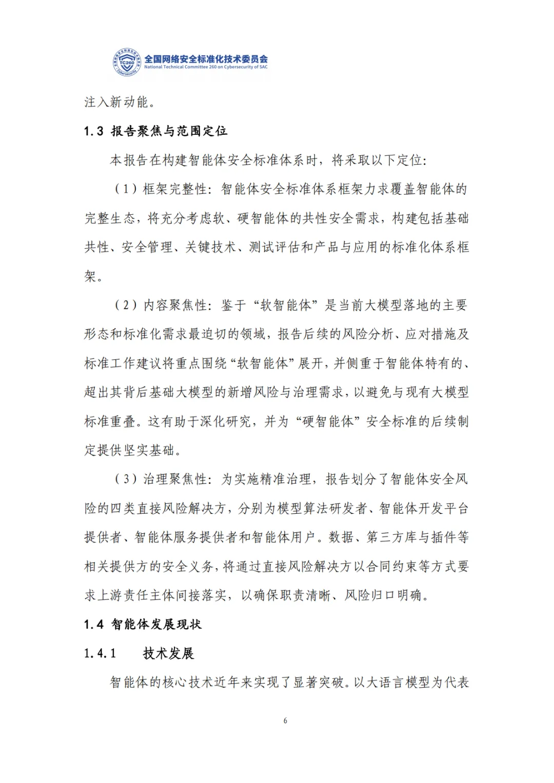 承前启后,聚焦增量:报告明确了其研究范围重点围绕“软智能体”,并侧重于智能体特有的、超出其背后基础大模型的新增风险。这避免了与现有大模型安全标准的重复,使研究更聚焦,也为后续“硬智能体”标准制定打下基础。