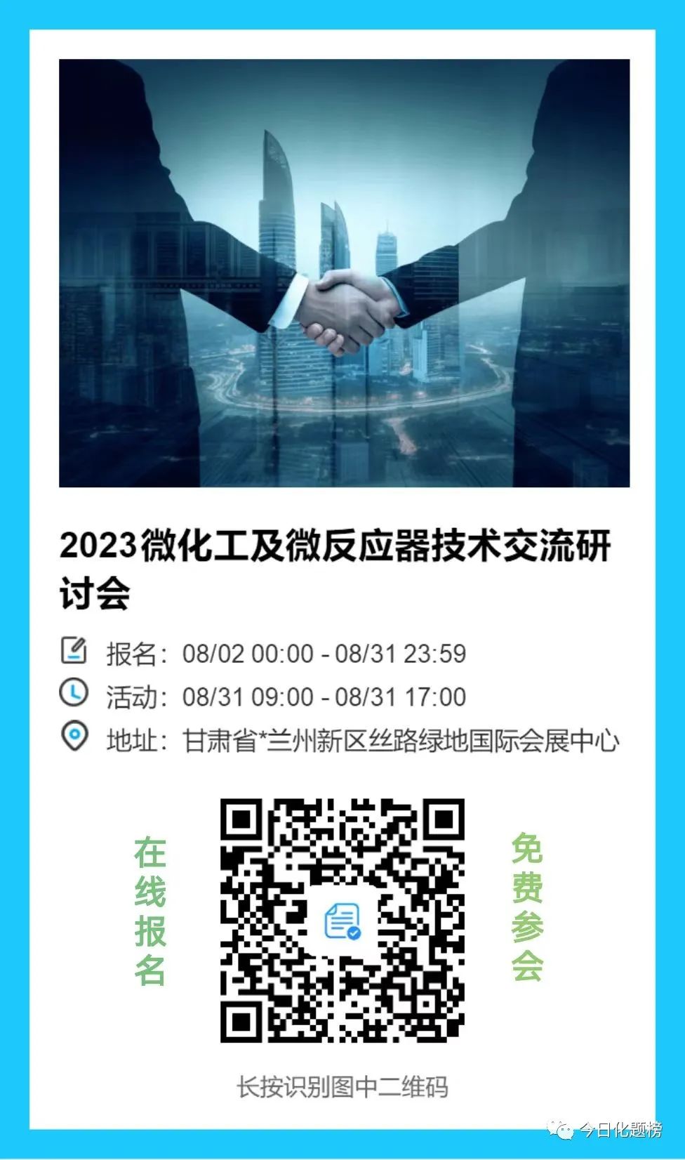 【免费参加】兰州8月31日-2023微化工及微反应器技术交流研讨会议通知