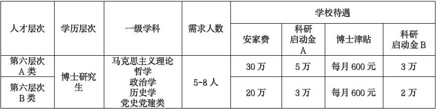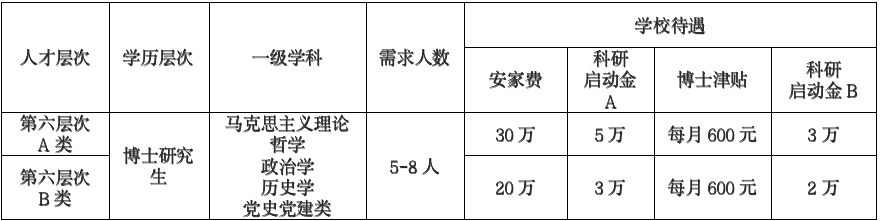 5. 对于有特殊成就的博士,学校将“一事一议”,协商确定科研启动费、岗位津贴、安家费和住房等待遇条件。