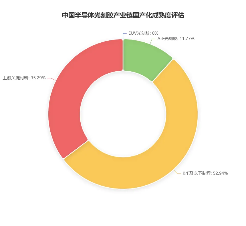 饼图: 中国半导体光刻胶产业链国产化成熟度评估