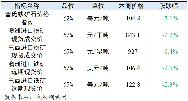 1.铁矿石价格(市场以普氏62%价格指数为定价基准)