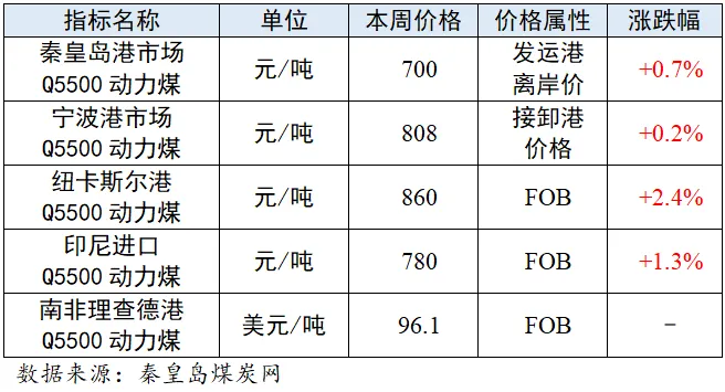3.煤炭价格(市场以秦皇岛港5500大卡动力煤价格为参考)