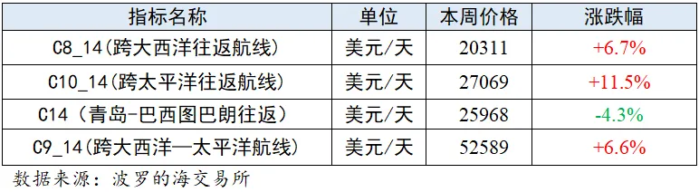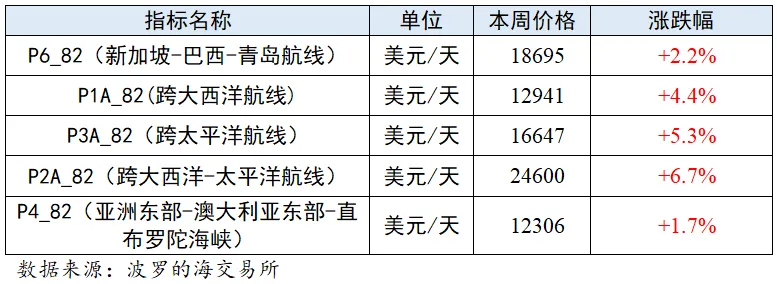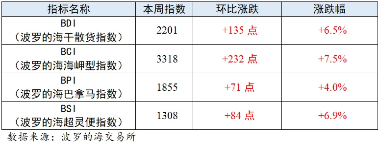 本周全球干散货船市场需求有所回暖,波罗的海干散货运价震荡上行,周五报收于2201点,较上期上涨6.5%。