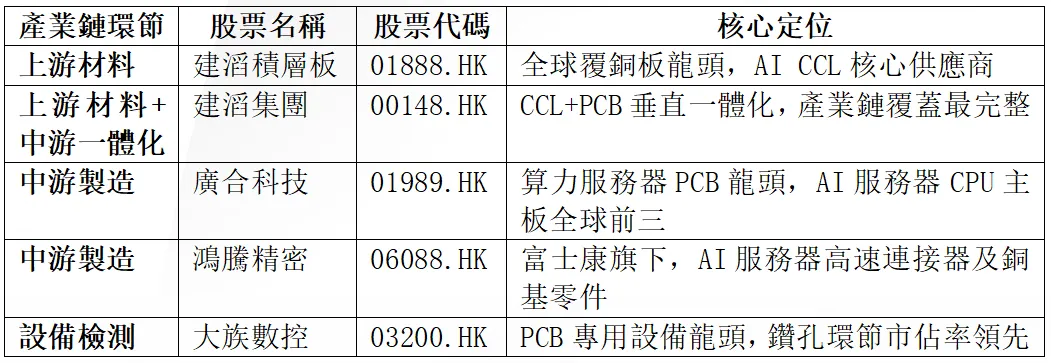 本報告聚焦港股PCB產業鏈五大核心標的,按產業鏈上下游關係進行深度剖析: