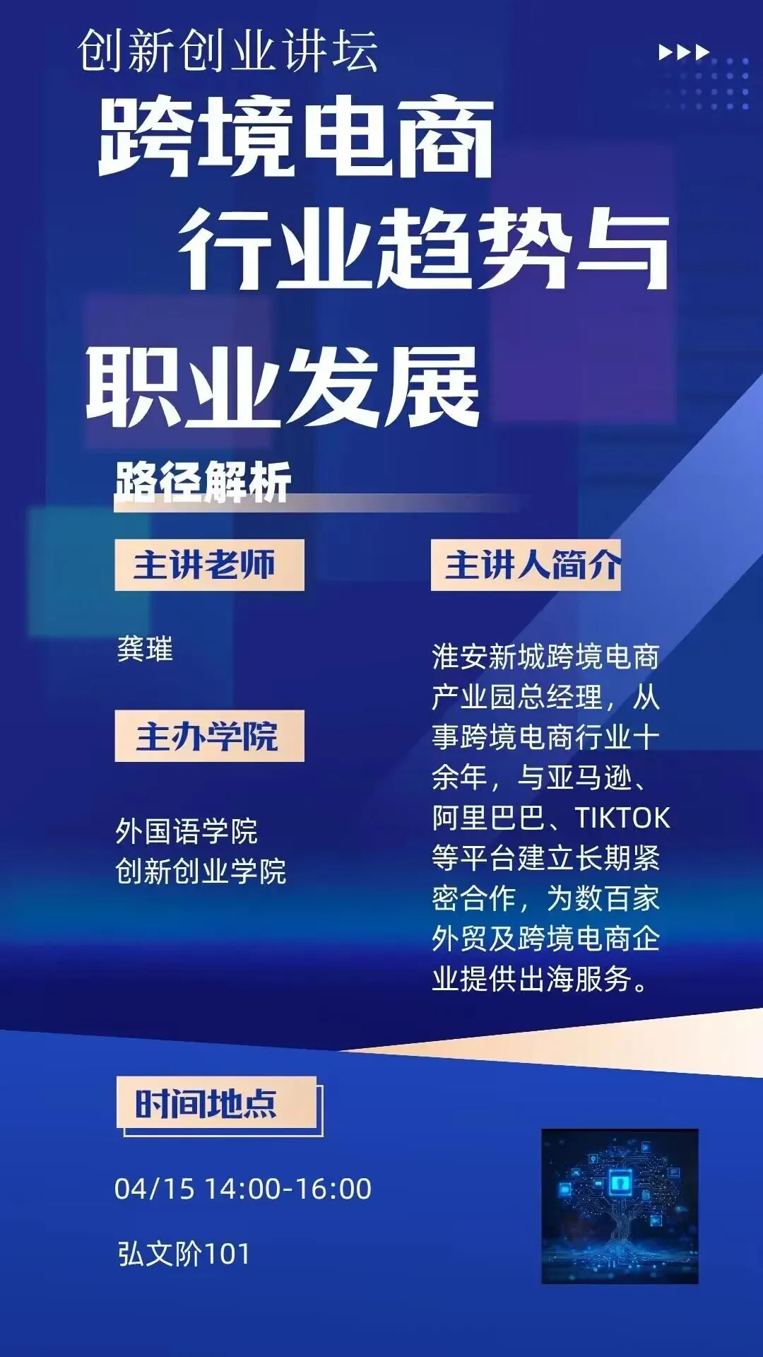 这不仅是一场行业趋势的解读,更是一次职业蓝图的规划与绘制。欢迎各位同学踊跃参与,把握与行业专家近距离交流的机会,共同探索跨境电商的无限可能!