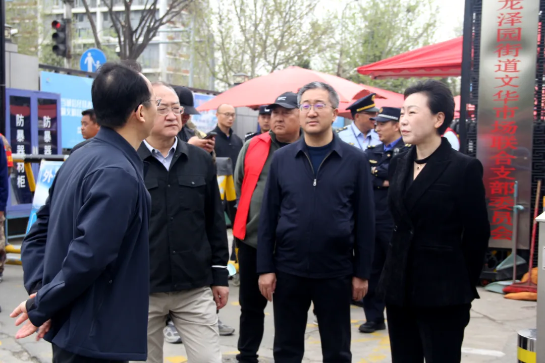 为持续深化全国文明城区创建工作,精准破解文华市场及周边重点区域突出问题,切实提升基层治理效能和辖区居民幸福感,4月13日上午,龙泽园街道工委书记王旸带队开展实地调研,街道领导班子成员、相关科队站所负责人一同参加。调研先后走访文华市场、文化街、东亚上北小区、东亚上北背街小巷、北店嘉园社区、北店时代广场等点位,通过实地查看、现场交办的方式,摸清实际情况、压实工作责任,推动创城工作走深走实。