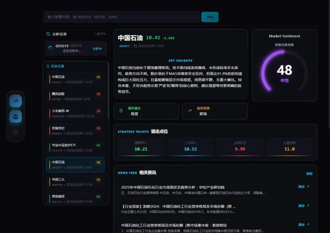 :核心结论 + 精确买卖点位 + 操作检查清单,直接告诉你"观望/买入/卖出" - 3. 多维度分析