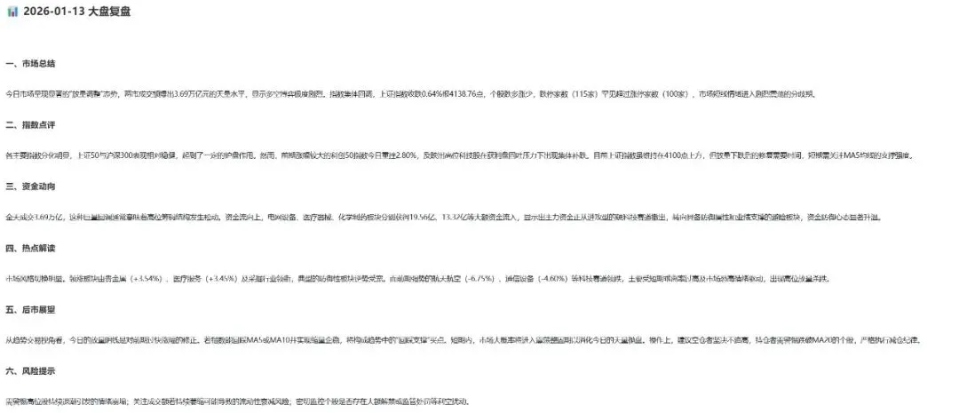 它的定位不是替代你的决策,而是节省你每天复盘的时间。你看完推送,10分钟了解昨日概况,知道哪些需要重点关注,今天操作心里有数。
