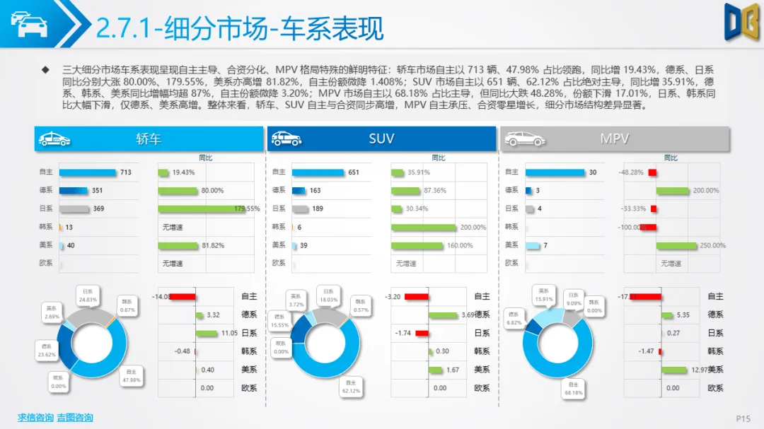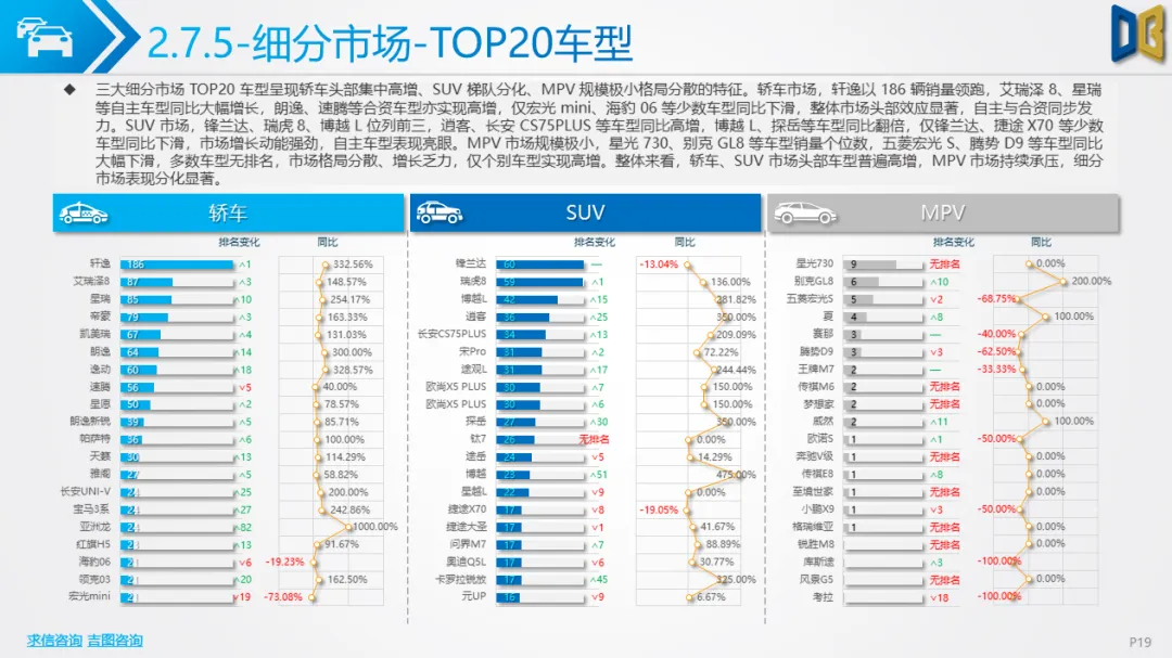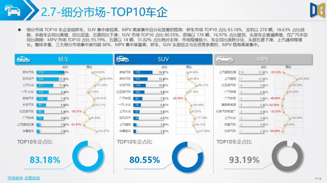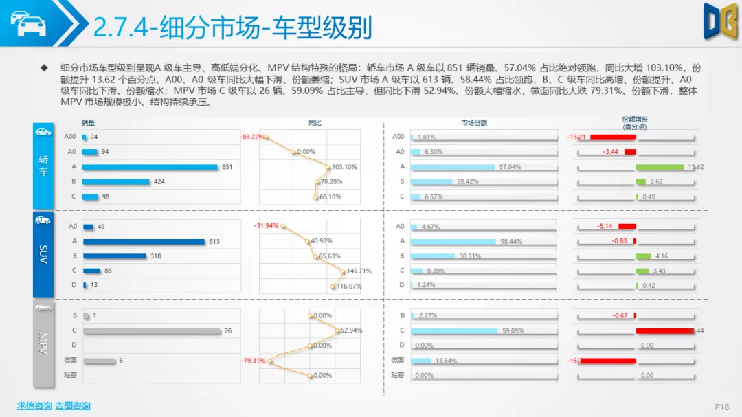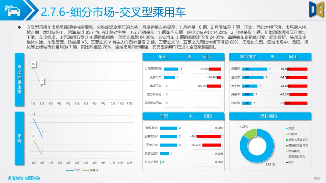 TOP20车企/品牌集中度高(车企占比86.41%、品牌占比92.23%),江铃、北汽福田、上汽通用五菱稳居头部,但同比普遍下滑;中通客车、长城汽车等企业同比爆发式增长,成为结构性亮点,市场呈现 “头部集中承压、特色品牌突围” 的分化态势。区域格局:市场高度集中于吉州区(38%占比),新干县、吉安县分列二、三位;除井冈山市同比大涨57.14%外,其余所有区县同比普遍下滑,吉水县、青原区等尾部区县同比暴跌超75%,全域市场深度承压。