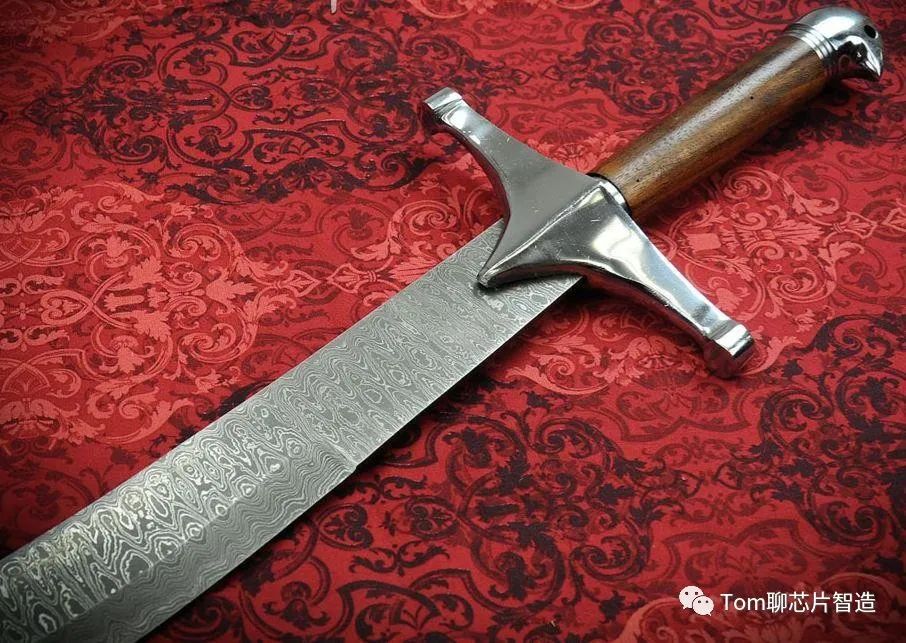 熟悉历史和地理的朋友都知道叙利亚首都大马士革(Damascene)这座城市,而大马士革刀剑以其锋利,纹理的精美而著称。其中需要用到一种镶嵌工艺:首先,在大马士革钢的表面上雕刻出所需的图案,将预先准备好的材料紧密地镶嵌到雕刻出的凹槽中,完成镶嵌后,表面可能会有些不平整。工匠会仔细打磨,确保整体的光滑。