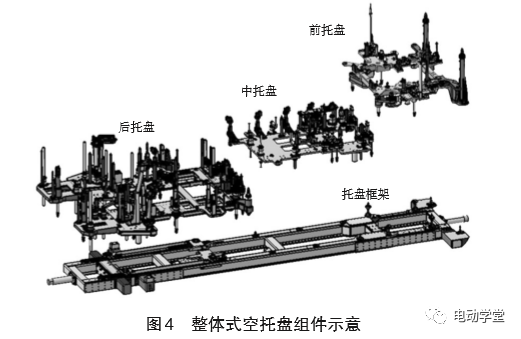 c.中托盘主要支撑电池总成,合装精度要求不高,通过变换定位销来满足多车型共线,减少中托盘种类。