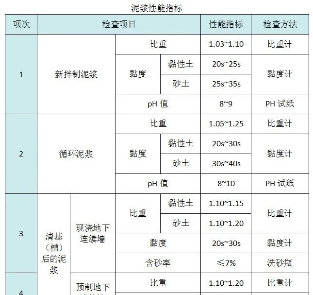 地下连续墙成槽前沿设计墙位布置导墙,导墙内面拆模后立即在墙间加设支撑,在混凝土养护期间重型机械不得在导墙附近作业或行走。护壁泥浆选用优质膨润土或粘粒含量大于 50%、塑性指数大于 20、含砂率小于 5%、二氧化硅与三氧化铝含量比值为 3~4 的优质粘土,使用前取样进行泥浆配合比试验,施工阶段必须严格泥浆管理,泥浆拌制和使用时必须进行检验,不合格及时进行处理。