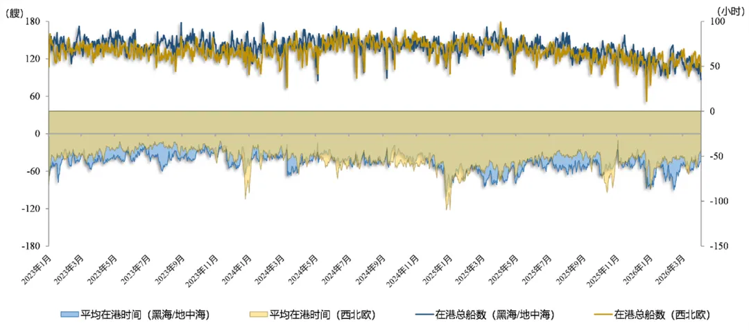 图表5:2023年1月1日-2026年4月7日欧洲港口船舶在港时间表现走势