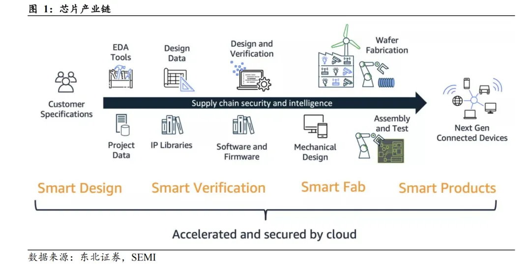 · 芯片设计定义产品功能与性能目标,但其实现程度取决于制造与封装能力。芯片设计环节按照预期的产品功能、性能指标形成电路设计版图,是后续晶圆制造和封装测试环节的基础。设计环节直接面向终端应用需求,将市场需求转化为可实现的电路方案,决定了芯片的核心功能和性能上限。