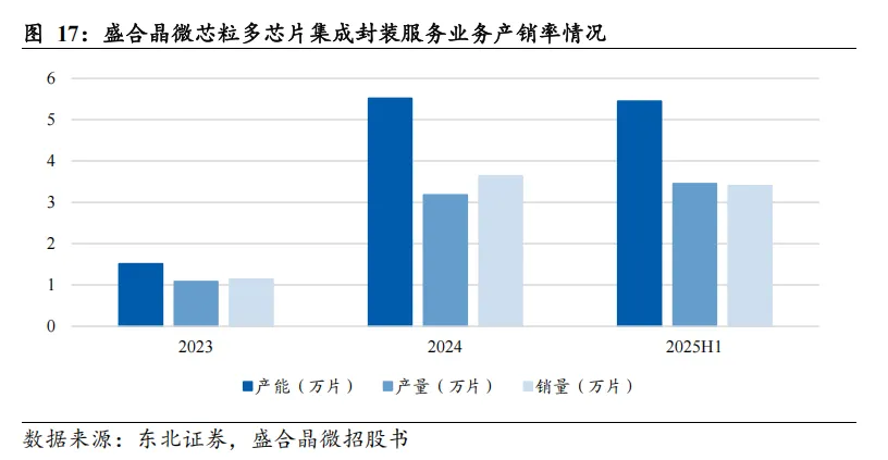 产能快速扩张但利用率偏低,显著低于台积电满产状态。2023-2025H1 公司Chiplet产能分别为1.51万片、5.52万片、5.45万片(半年度),产量分别为1.09万片、3.18万片、3.45万片,销量分别为1.14万片、3.64万片、3.40万片。以2025H1 数据测算,半年度产能5.45万片,但产量仅3.45万片,产能利用率约63.3%,显著低于台积电CoWoS满产状态,这也是制约当前毛利率水平的关键因素。