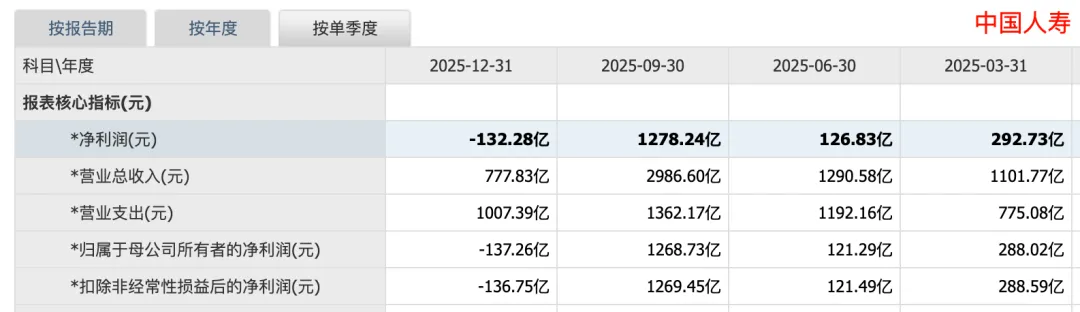 因此,在2025年第四季度两家公司的净利润都有明显的回撤,但是中国人寿因为 FVTPL 的占比更高,公允价值变动直接计入了当期损益,第四季度甚至出现了 137.28 亿元的亏损。