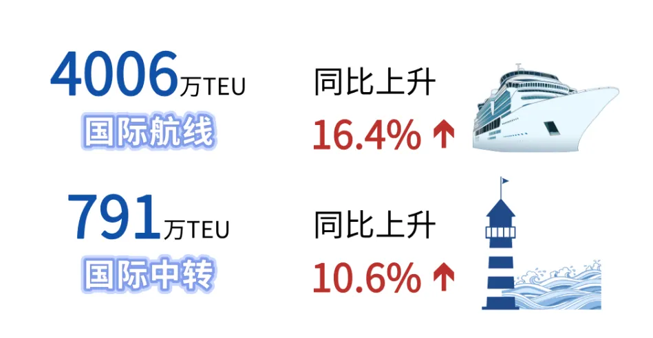 全港拥有近350条国际航线,覆盖全球200多个国家和地区的700多个港口,航线连通度保持全球第一;同时加速布局拉美、非洲、东南亚等新兴市场国际航线,亚洲、北美、欧洲干线运力保持稳固,跨境电商海运等新业态成为增长点。