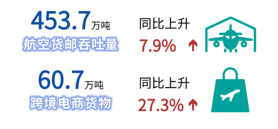 ·货运中转领域同步突破,两场货邮中转量提升35%,推行复合型国际中转服务,电子信息“秒级放行”、进出港衔接“零延时”。