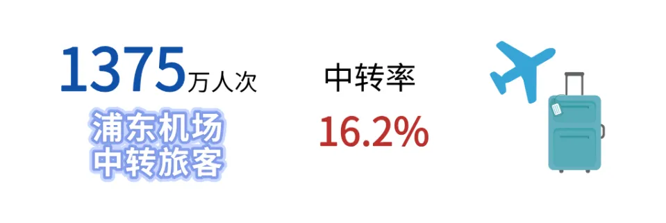 ·浦东机场中转旅客达1375万人次,中转率提升至16.2%。