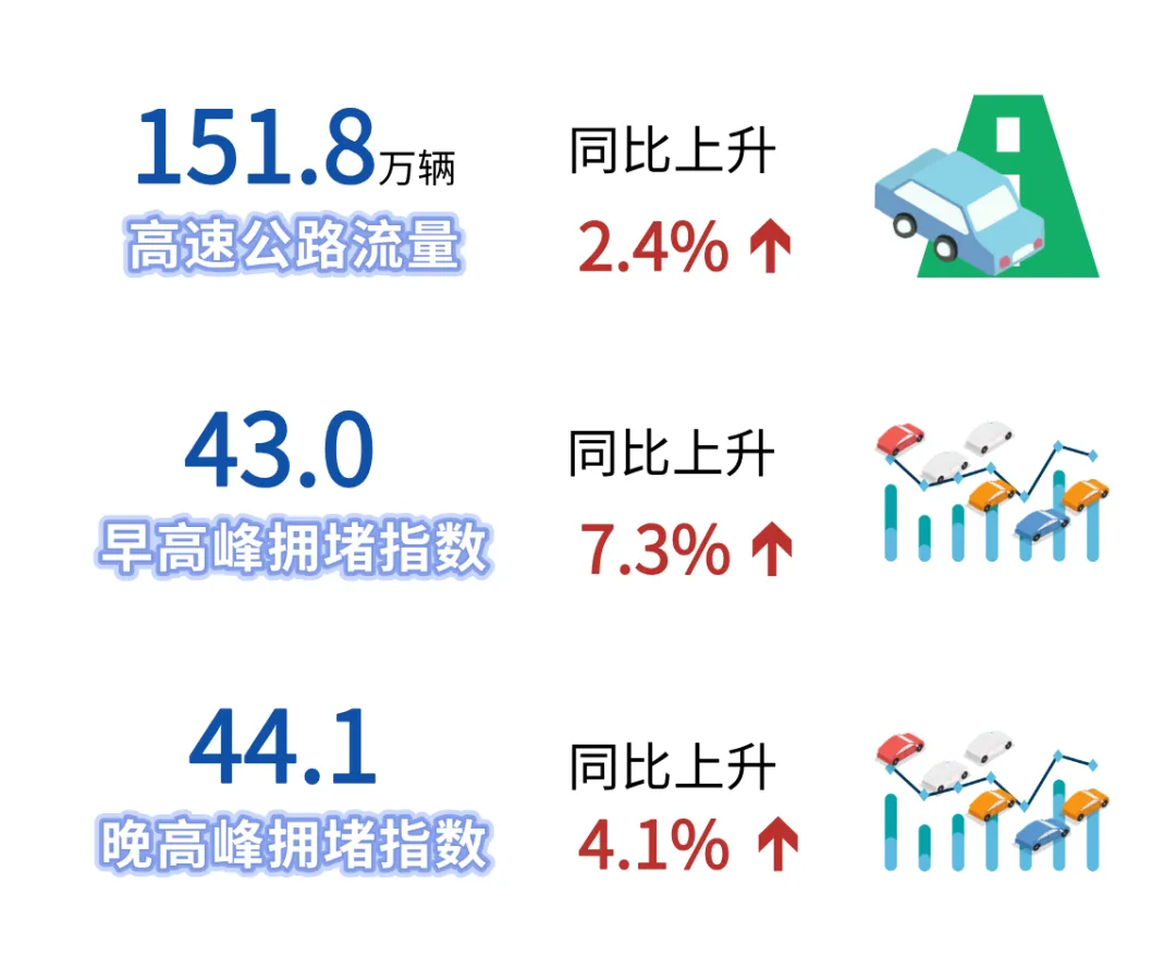 路网出行需求持续释放,2025年高速公路及国省干道流量攀升,中心城拥堵形势依然严峻。