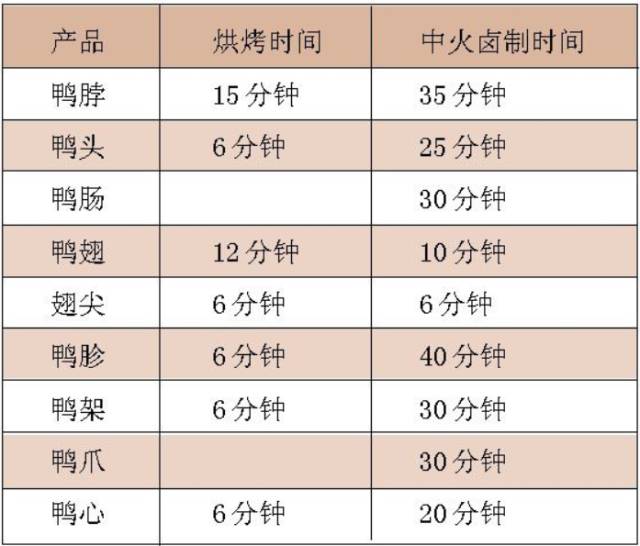 一是腌制,所有鸭附件在腌制时只需加入盐、老抽拌匀,腌制12小时即可,每干克产品按照盐8克、老抽8克的比例腌制,经烘烤后直接入调好味的卤汤中卤制。