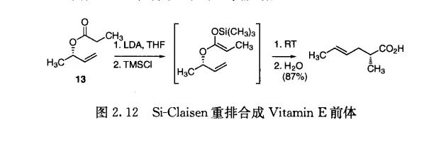 重排是高度控制地形成小分子的立体化学和区域选择性关键化学方法。据报道,13的硅-克莱森重排用来合成一个关键的、手性维生素E中间体。