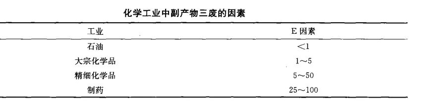 Sheldon提出了“E因素”的概念,它用三废/产品的重量比评估环境可接受性。三废的数量可以转化的无机盐来计算。到目前为止,制药、精细化工行业中的E因素是最高的。人们可能认为,这些行业所产生的三废量较其他行业产生的少,特别是制药和精细化工产品生产过程中采用了多步骤经典的合成方法,虽然如此,数据显示还有提高的空间。
