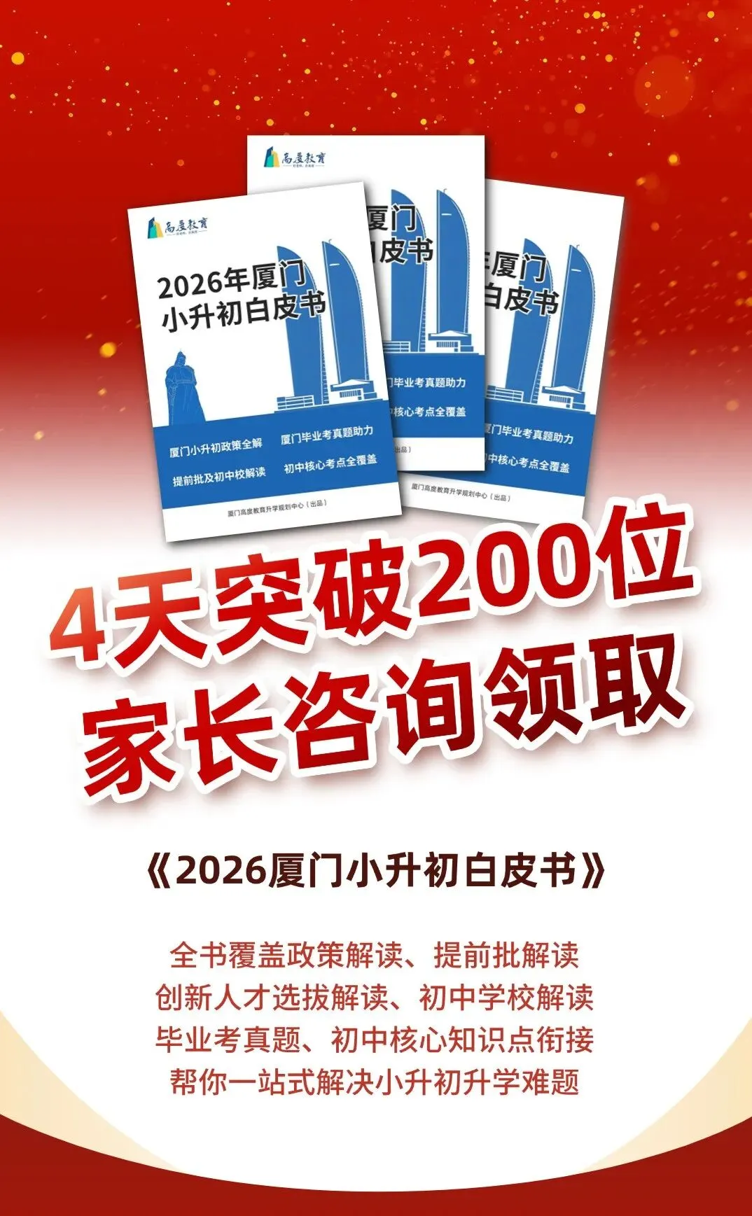 这本由我们升学规划中心出品的《2026厦门小升初白皮书》,短短4天,已经突破200位家长咨询领取啦。