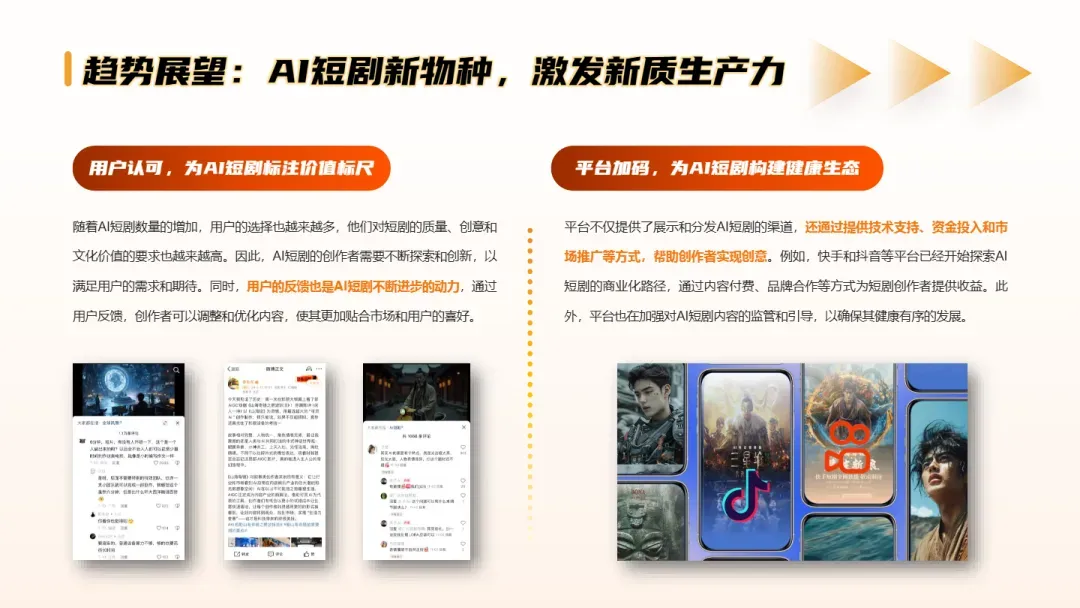 • 平台构建AIGC生态闭环:抖音“即梦AI”、快手“可灵AI”、昆仑万维“SkyReels”等平台级工具已支持从文生图、图生视频到配音配乐的全流程制作,降低创作门槛,推动“一人团队”也能产出高质量短剧内容。