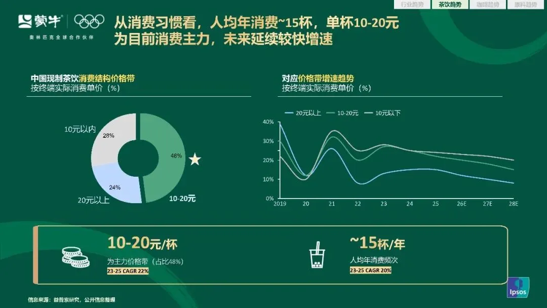 茶饮市场的创新,始终围绕着消费者的需求变化展开。2025 年现制茶饮人均年消费频次约 15 杯,10 到 20 元的价格带占比 48%,是市场绝对的消费主力。消费者对茶饮的需求,早已从单纯的解渴,升级到健康、质价比,再到情绪价值的共鸣。健康化成了行业不可逾越的基线,超过半数的消费者会因为健康顾虑减少茶饮消费,九成以上的受访消费者,会重点关注饮品中牛奶原料的品质。