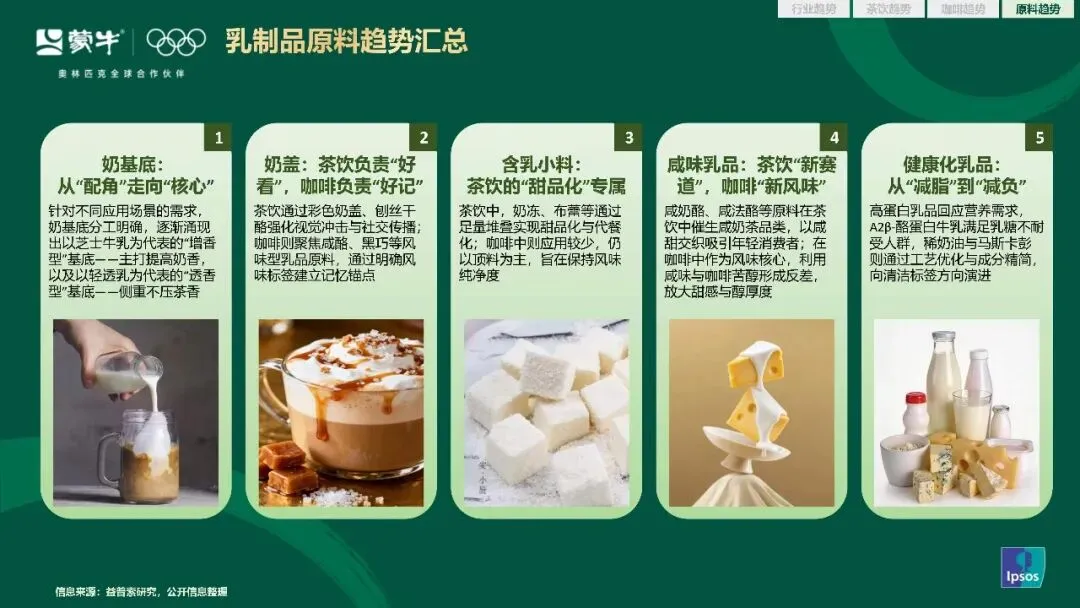 乳品原料的创新,始终是茶咖产品升级的核心支撑,也从饮品的配角,逐步走向产品创新的核心。奶基底的分工愈发明确,分化出主打提升奶香的增香型基底,和侧重不压茶香的透香型基底,精准适配茶饮和咖啡的不同应用场景。