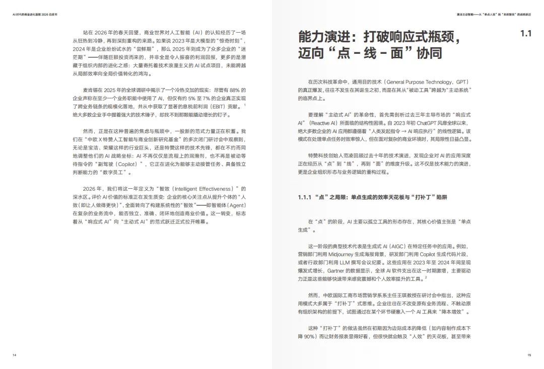 白皮书开篇便定义了2026年商业进化的关键特征:主动智能(Proactive AI)。