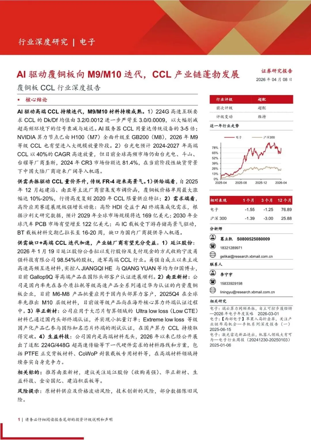 覆铜板CCL行业深度报告:AI驱动覆铜板向M9/M10迭代,CCL产业链蓬勃发展-260408-西部证券-18页