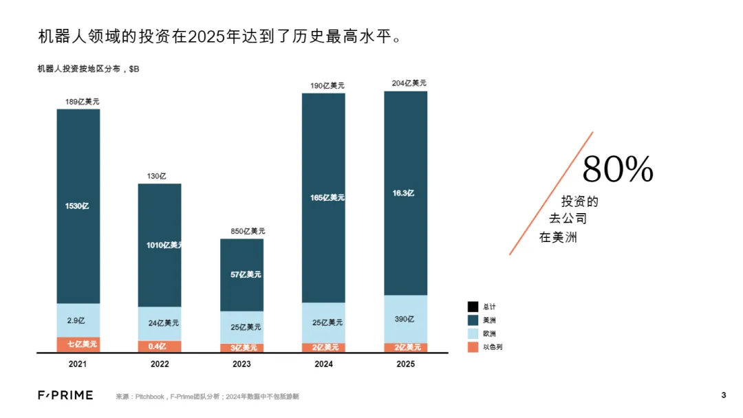 200 亿美元:今年对机器人的投资达到历史新高 3x:通用机器人领域的增长,由人工智能引发的颠覆推动 两倍:国防机器人领域的增长,由政府需求推动