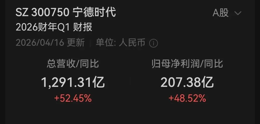 今天凌晨,宁德时代Q1业绩公布。