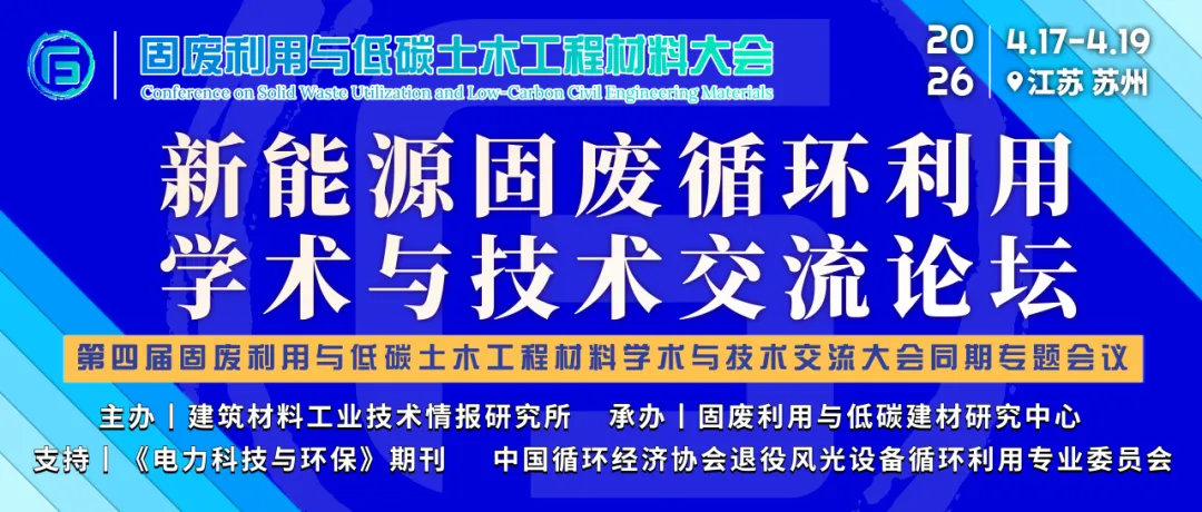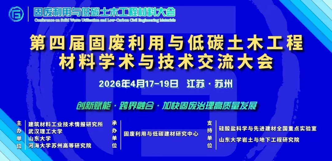 第四届固废利用与低碳土木工程材料学术与技术交流大会将于4月17-19日在苏州召开。聚焦固废全链条治理与资源化利用,深化科创与产业创新融合,衔接相关主管部门,畅通矿业、电力、冶金、建材、交通、水利、化工、新能源等多领域跨界协同路径,助力行业落实政策目标,实现高质量可持续发展。